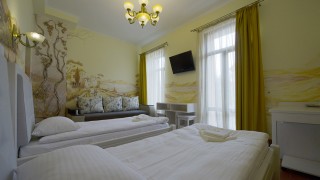 У номері є два окремих ліжка, які можна зсунути при необхідності, а також двоспальний диван, який при необхідності розкладається і дає можливість 4-місного розміщення.